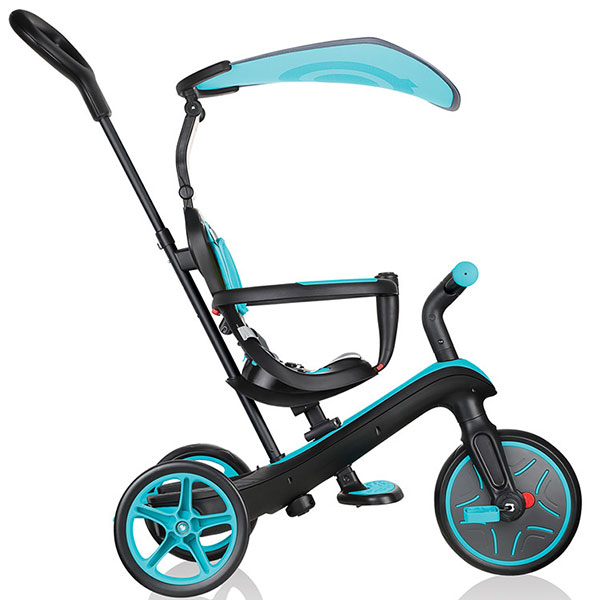 Globber EXPLORER 4u1 je bezbedan tricikl za dečake i devojčice zahvaljujući sigurnosnom pojasu u 5 tačaka sa mekim, udobnim jastučićima za ramena, dečijim osloncem za noge, sedištima sa visokim naslonom i sigurnosnom šipkom.